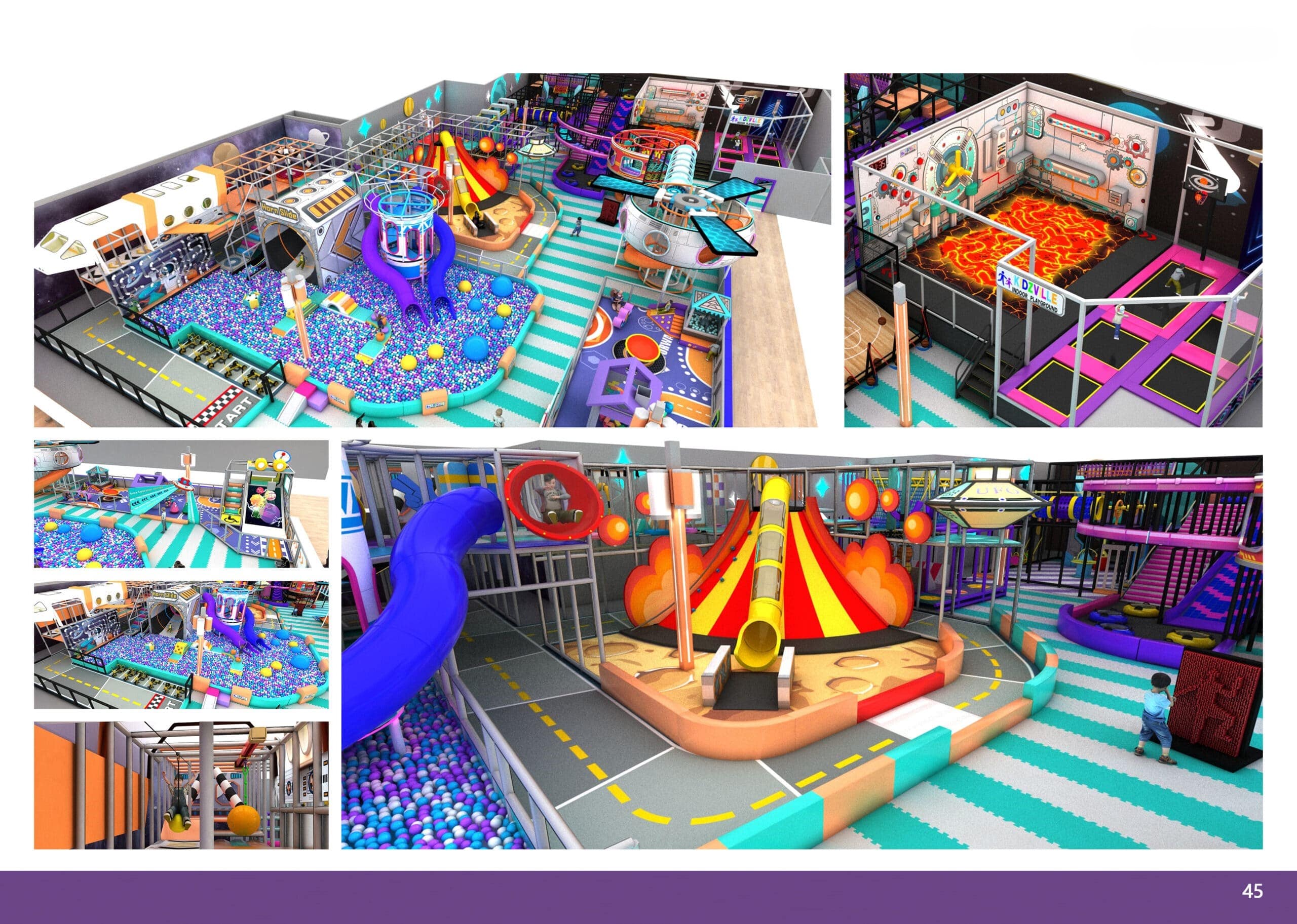 Progetto 10: esempio di playground indoor progettato da Pgoplay. Include strutture come scivoli, altalene, vasche con palline, percorsi multilivello e aree inclusive. Ogni installazione è pensata per garantire sicurezza, divertimento e massima personalizzazione per i bambini, nel rispetto della normativa europea EN1176. Ideale per ludoteche, centri gioco e family park.