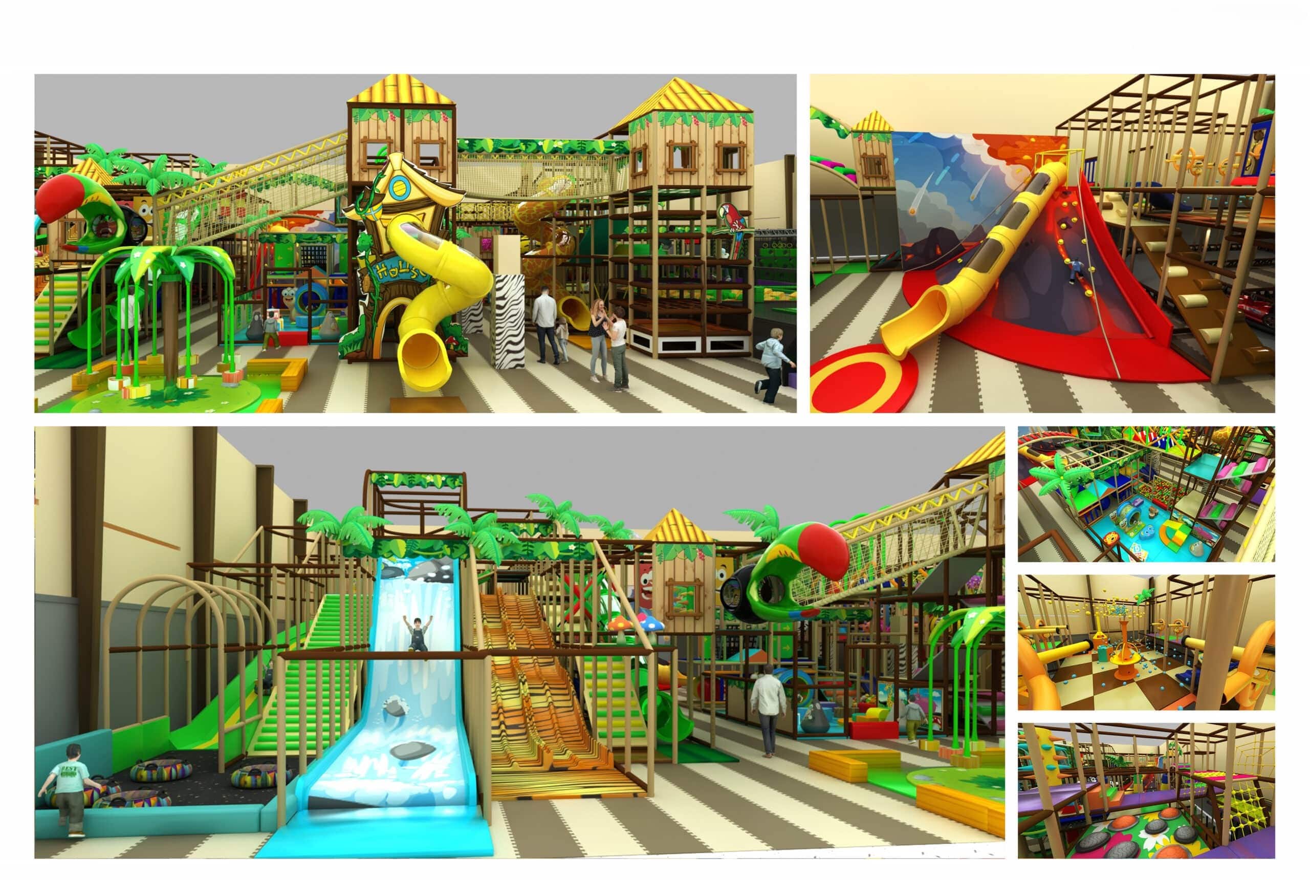 Project 2: example of an indoor playground designed by Pgoplay. Includes facilities such as slides, swings, ball pits, multi-level courses and inclusive areas. Each installation is designed to ensure safety, fun and maximum personalization for children , in compliance with the European standard EN1176. Ideal for playrooms, play centers and family parks.